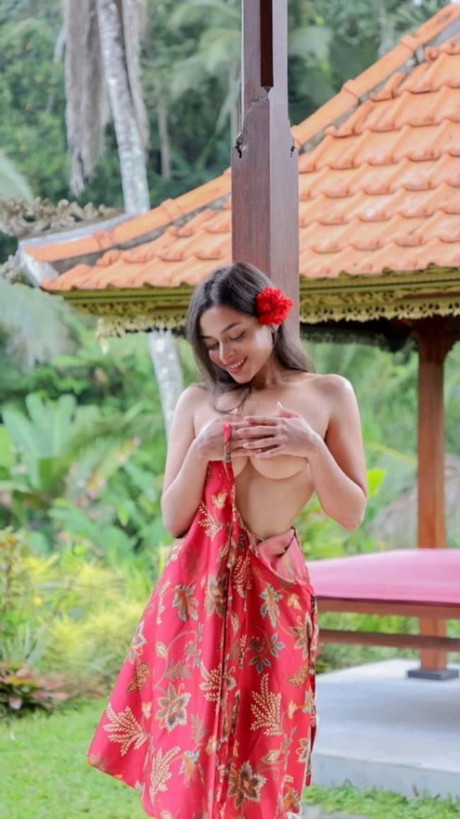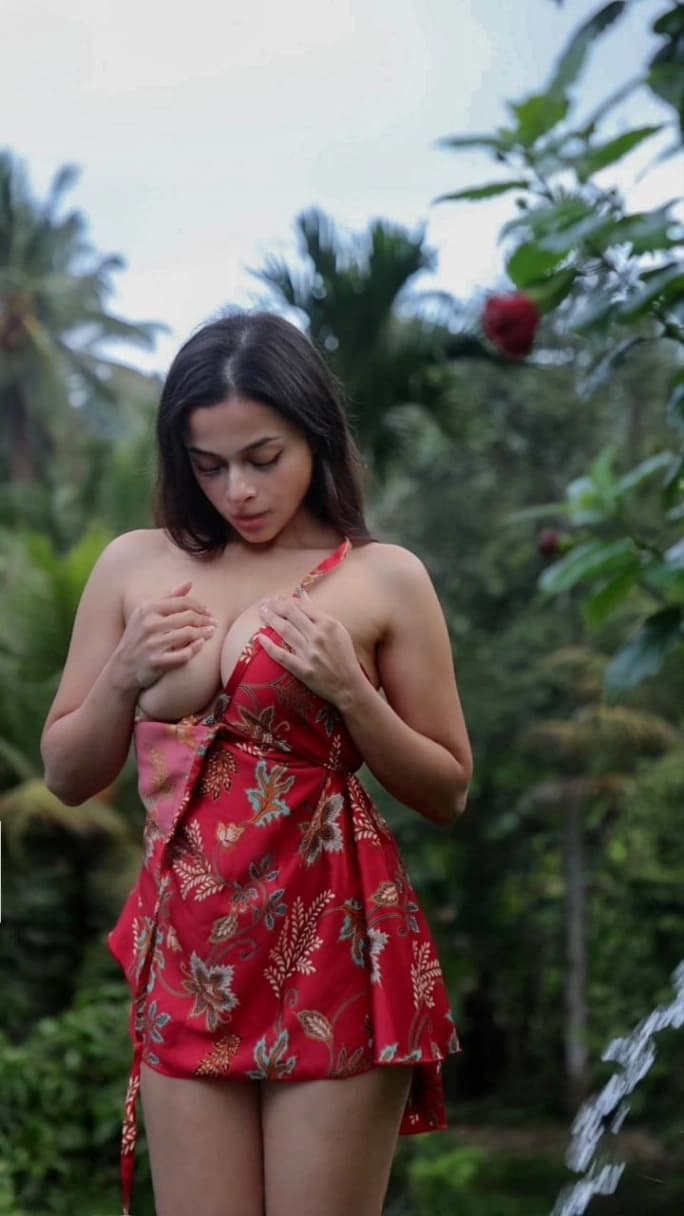 Ashwitha Nude Photoshoot Leaked Red Floral Dress Big Ass Viral
