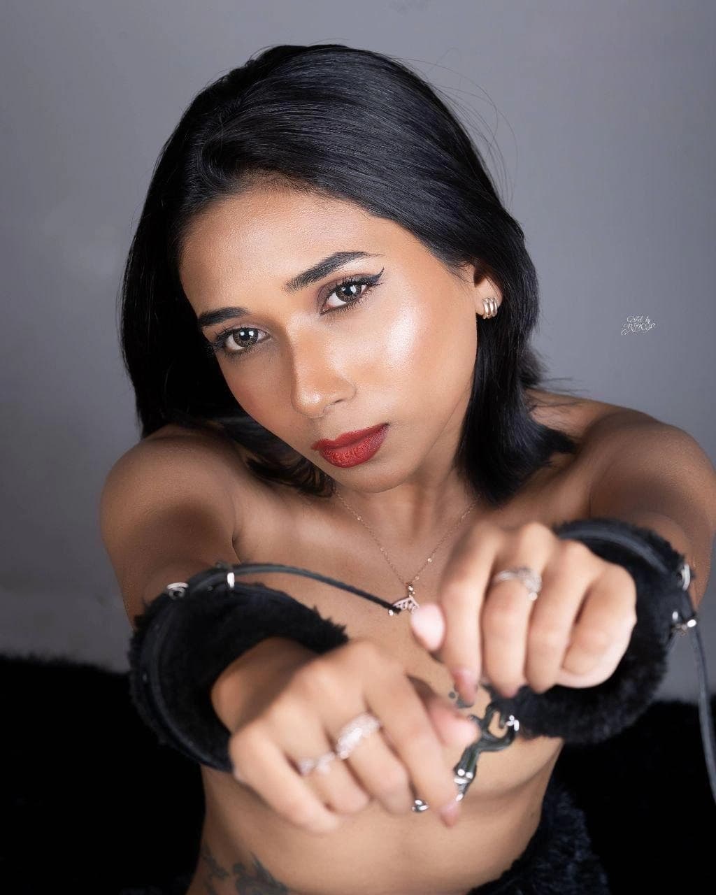 The gorgeous desi wife slowly unwraps her saree, letting it fall to the floor and revealing her massive tits. Her semi-nude body is a fucking sight, with perky nipples begging to be sucked. She teasingly slides her hands down to her wet pussy, rubbing her clit and spreading her legs for the camera. Her moans get louder as she fingers herself deep, making her cunt drip with excitement. This busty bhabhi knows how to drive a man wild with her seductive striptease and pussy tease.
